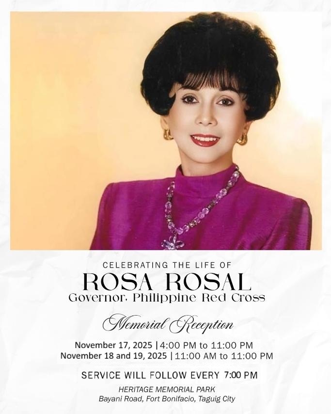 Gov. Rosa Rosal’s inurnment ceremony was held on the morning of 20 November 2025 at the Heritage Memorial Park in Fort Bonifacio, Taguig.